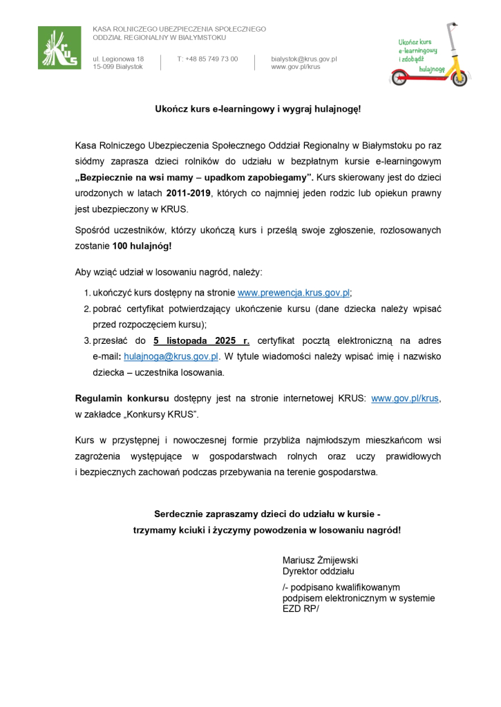 Kasa Rolniczego Ubezpieczenia Społecznego Oddział Regionalny w Białymstoku po raz