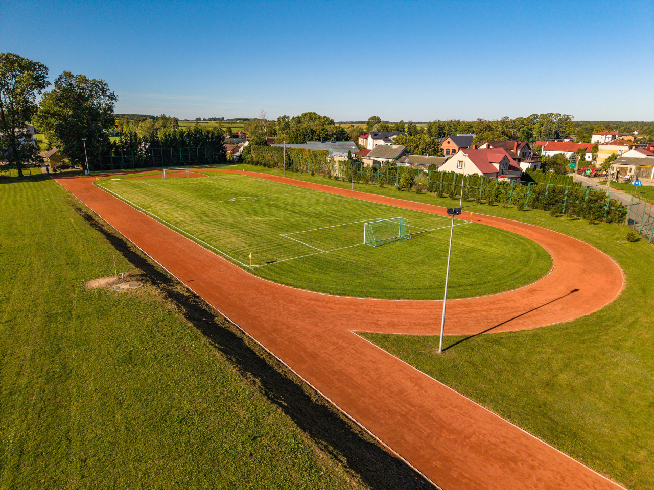 W piątek 26 września br. odbyło się otwarcie i poświęcenie zmodernizowanego boiska w Perlejewie. Modernizacja polegała na wykonaniu nowej płyty o nawierzchni naturalnej trawiastej oraz bieżni z mączki ceglanej, montażu automatycznego systemu nawadniania, wymianie oświetlenia na energooszczędne, przebudowie rozbiegu w dal i zeskoczni, a koszt całkowity zadania wyniósł 499 270 złotych i sfinansowany został z budżetu Gminy Perlejewo w 19,88 % oraz dotacji z Funduszu Wsparcia Gmin i Powiatów Urzędu Marszałkowskiego Województwa Podlaskiego w 80,12 %.