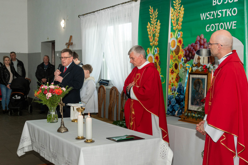Wójt podziękował mieszkańcom, organizatorom uroczystości oraz wszystkim osobom zaangażowanym w przygotowanie wydarzenia. Szczególne słowa wdzięczności skierował do księży Krzysztofa Janowica i Grzegorza Suchodolskiego za obecność, odprawienie mszy świętej, poświęcenie kapliczek i pól oraz słowa podkreślające znaczenie tego dnia dla lokalnej społeczności.
