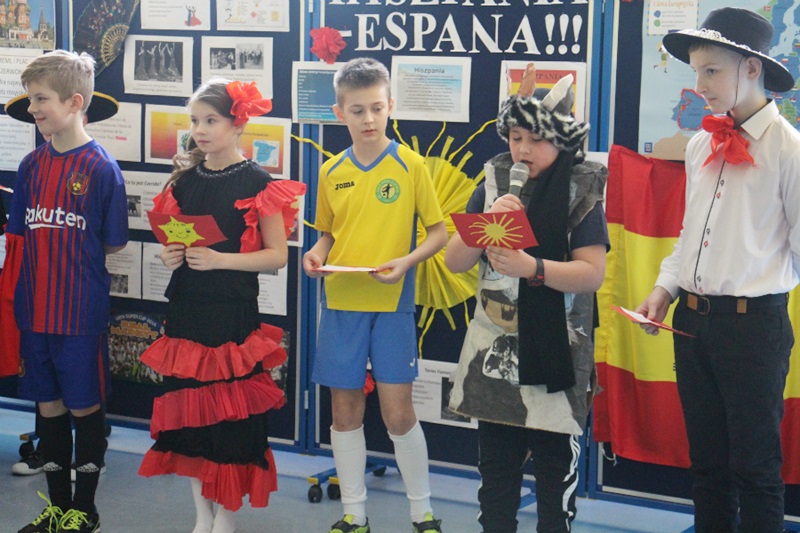 Klasy I i II zabrały widzów w „podróż” po dawnej i współczesnej Rosji, recytując i śpiewając krótkie utwory w języku rosyjskim, pokazując także rosyjskie tańce. Klasy trzecie przygotowały prezentację o Hiszpanii. Klasa czwarta zaprezentowała Wielką Brytanię. Klasa V a zaprezentowała słoneczną Grecję, natomiast uczniowie klasy V b przybliżyli historię, zabytki, zwyczaje oraz przeczytali wiele ciekawostek o Francji. Z kolei klasa VI zapraszała do słonecznych Włoch. Uczniowie klasy VII zaprezentowali Polskę.