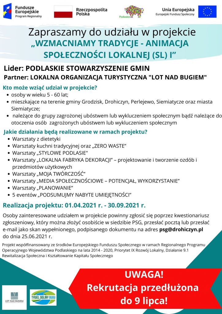 Przedłużona rekrutacja do projektu "Wzmacniamy tradycje-animacja społeczności lokalnej"
