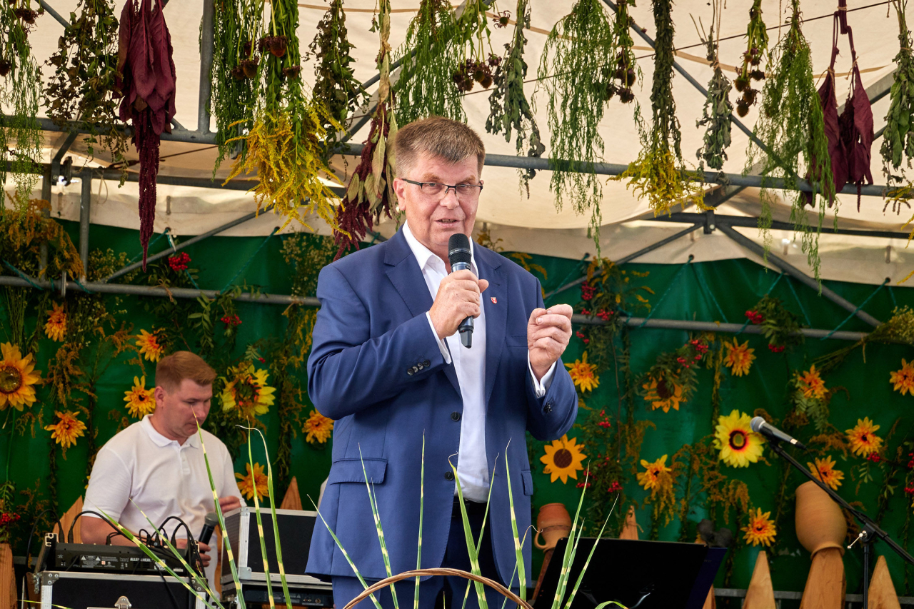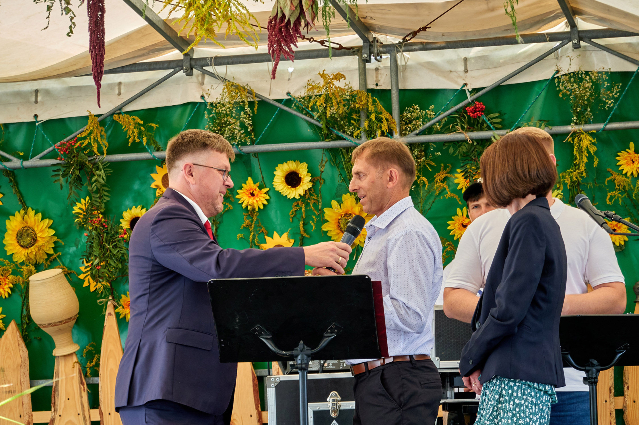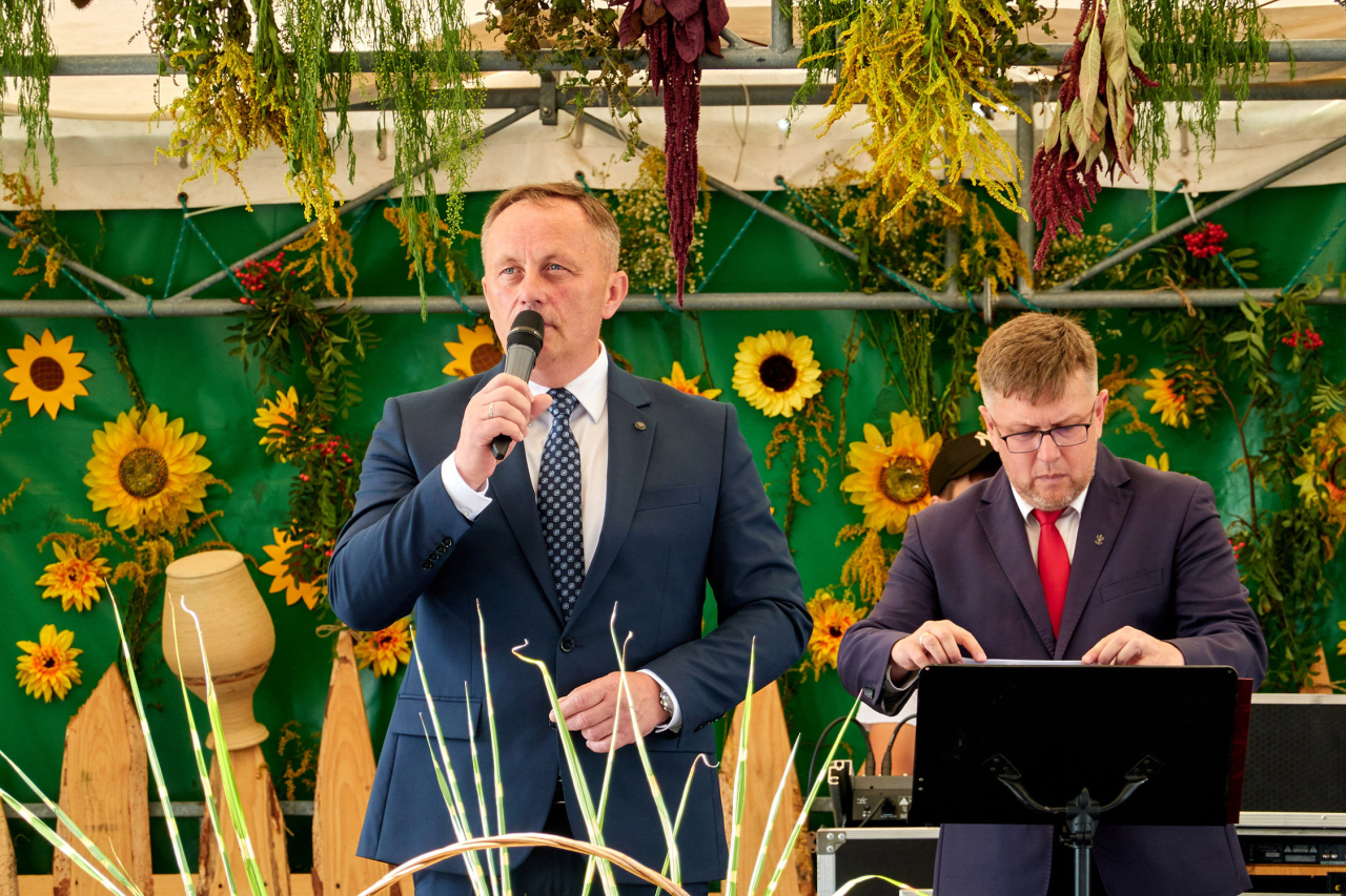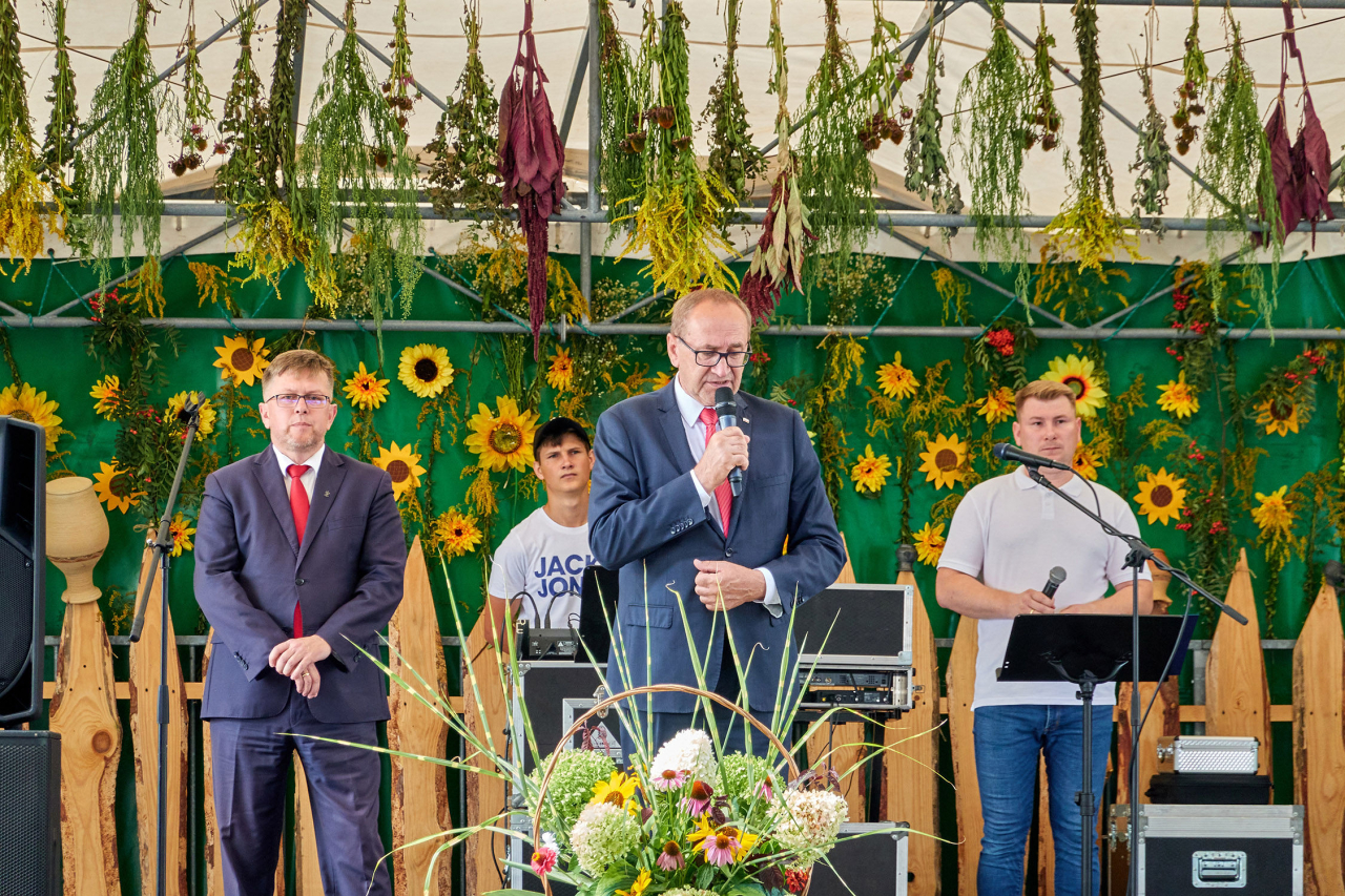 Otwarcia Dożynek dokonał Pan Jakub Wierzbicki – Wójt Gminy Perlejewo oraz Starostowie tegorocznych dożynek Maria i Krzysztof Parzonko. Gospodarze dożynek przełamali się chlebem z licznie zgromadzonymi uczestnikami wydarzenia. Po otwarciu uroczystości głos zabrali zaproszeni goście: Pan Jacek Bogucki Senator RP, który wręczył Panu Wójtowi symboliczne czeki na kolejne dofinansowania dla Gminy Perlejewo. Głos zabrał również Pan Marek Bobel Starosta Powiatu Siemiatyckiego, Pan Wojciech Szawkało, Pan Grzegorz Leszczyński Prezes Podlaskiej Izby Rolniczej oraz Pan Jerzy Leszczyński Radny Województwa Podlaskiego.