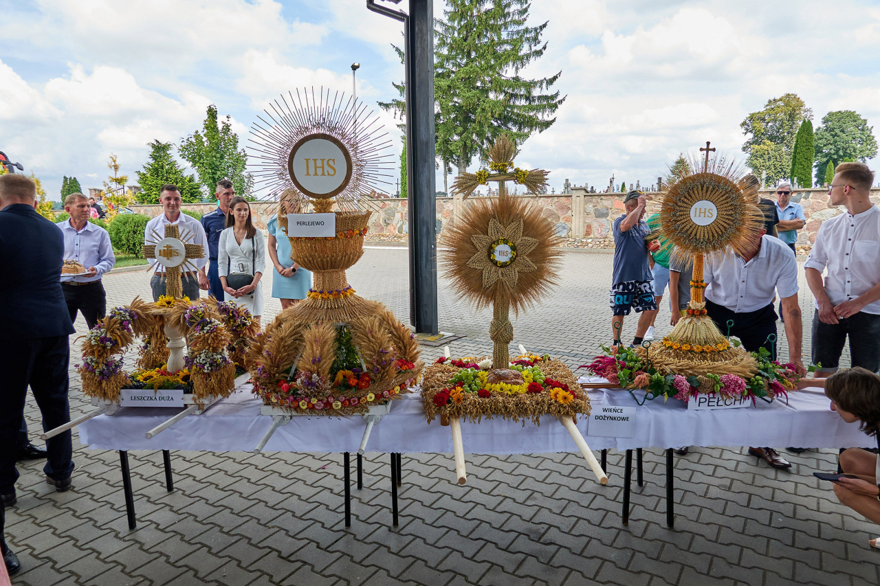 Dożynki rozpoczęły się Mszą Świętą w Kościele pw. Przemienienia Pańskiego w Perlejewie. Mieszkańcy gminy przygotowali na tę uroczystość piękne dożynkowe wieńce oraz złożyli na ołtarzu dary w podziękowaniu za zebrane plony. Korowód z wieńcami dożynkowymi przemaszerował z Kościoła na pobliski odświętnie udekorowany plac dożynkowy.