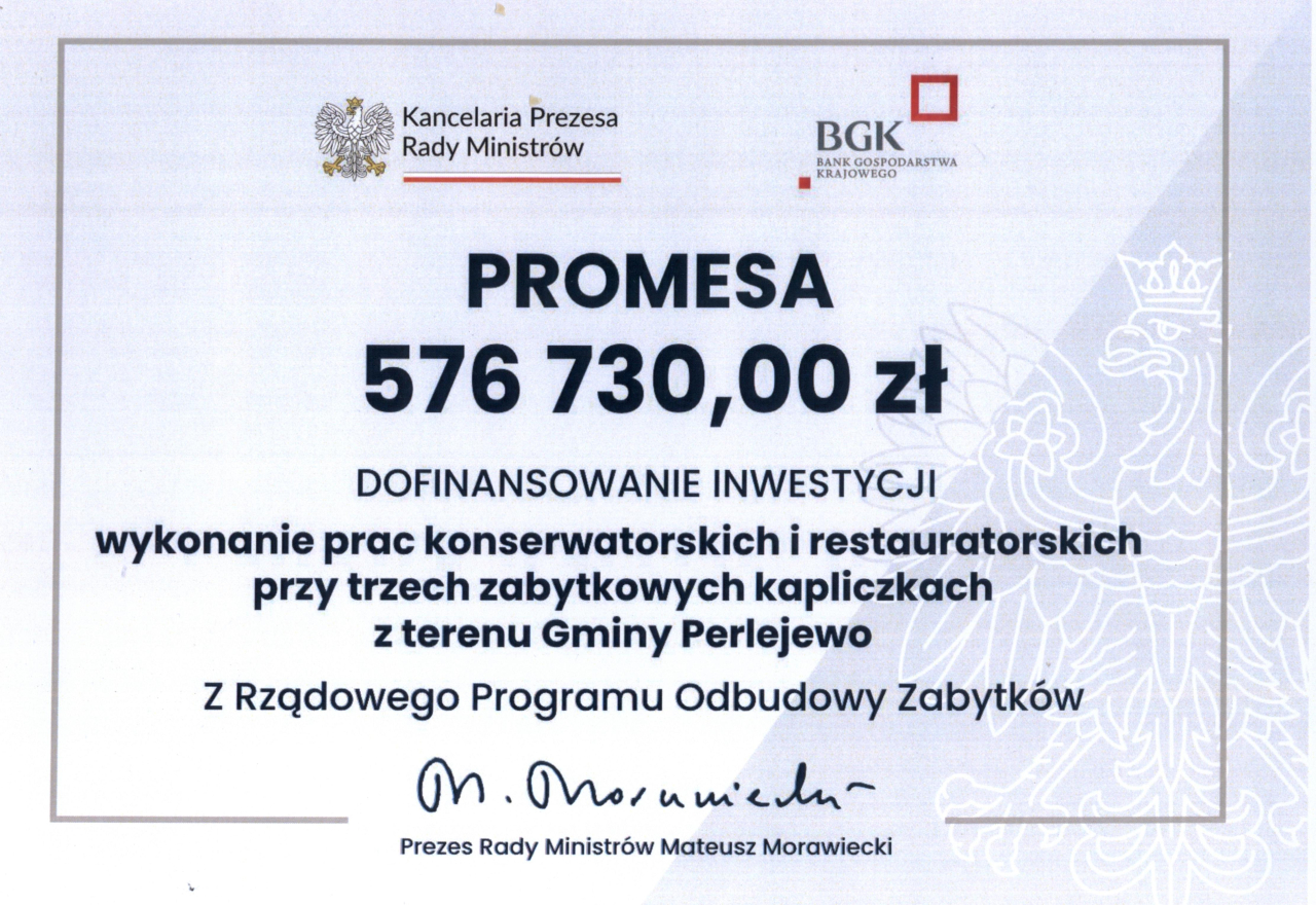 Poniżej promesy oraz podziękowanie przekazane Wójtowi Gminy Perlejewo podczas Dożynek: