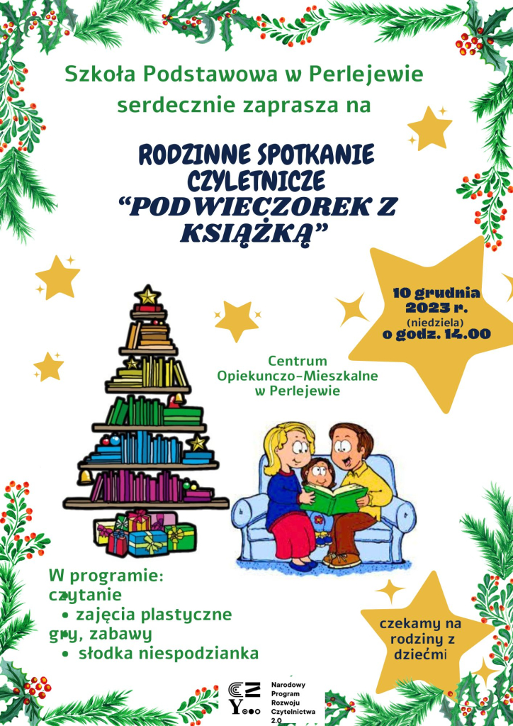 Szkoła Podstawowa w Perlejewie serdecznie zaprasza na drugie rodzinne spotkanie czytelnicze, które odbędzie się w najbliższą niedzielę o godz. 14.00 w Centrum Opiekuńczo-Mieszkalnym w Perlejewie.