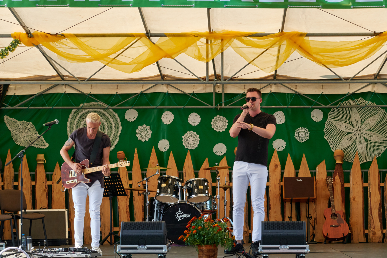 Imprezie towarzyszyła wystawa wieńców dożynkowych, konkursy, w tym na MEGAwarzywo, dmuchane miasteczko zabaw dla dzieci, stoiska promocyjno – informacyjne Policji i Sanepidu. Można było także skorzystać z przejażdżek bryczkami.