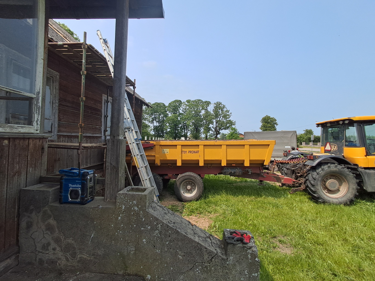 Dziś rozpoczął się remont budynku dawnej plebanii w Perlejewie, obejmujący przebudowę dachu: zamianę jej konstrukcji, wymianę poszycia dachowego, wymianę rynien i rur spustowych, przemurowanie kominów – bez zmiany parametrów istniejącego budynku.