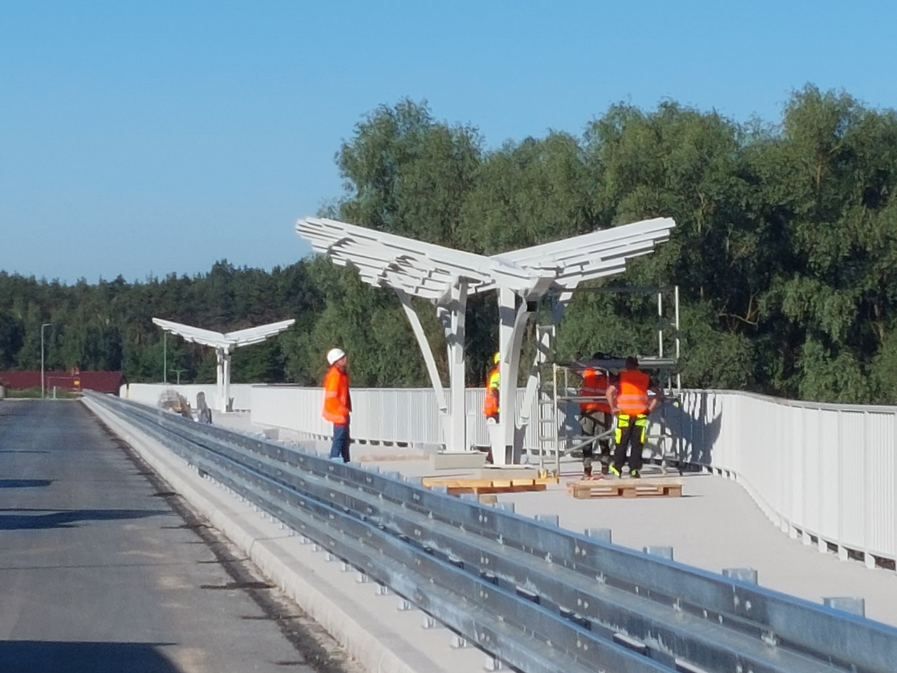 Na załączonych zdjęciach możecie Państwo zobaczyć aktualny stan prac. Pracownicy budowy, ze względu na rosnącą liczbę odwiedzających proszą o uszanowanie prowadzonych prac i nie wchodzenie na teren budowy. Przypominamy, że teren budowy nadal pozostaje zamknięty z uwagi na kwestie bezpieczeństwa, a wstęp na most jest w tej chwili surowo zabroniony!