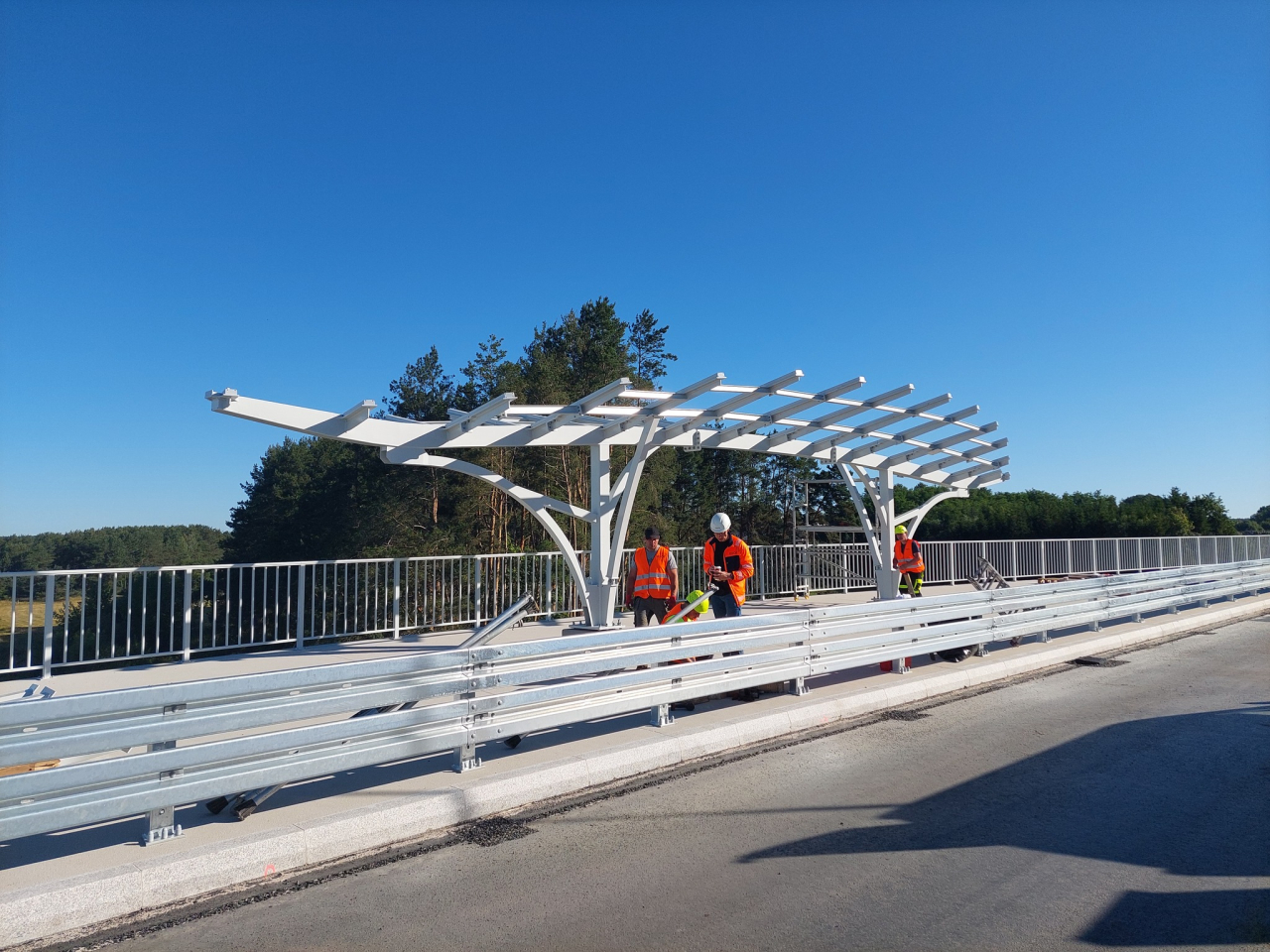Z przyjemnością informujemy, że budowa mostu łączącego Gminę Perlejewo z Gminą Jabłonna Lacka zbliża się do finału. Obiekt jest już niemal gotowy i obecnie trwają na nim ostanie prace wykończeniowe, montaż wszelkich zabezpieczeń i oznakowań. Przewidziany umową termin zakończenia inwestycji to koniec października 2025 roku.