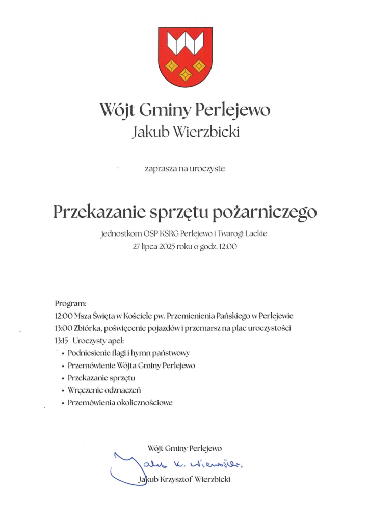 Zaproszenie na uroczyste przekazanie sprzętu pożarniczego