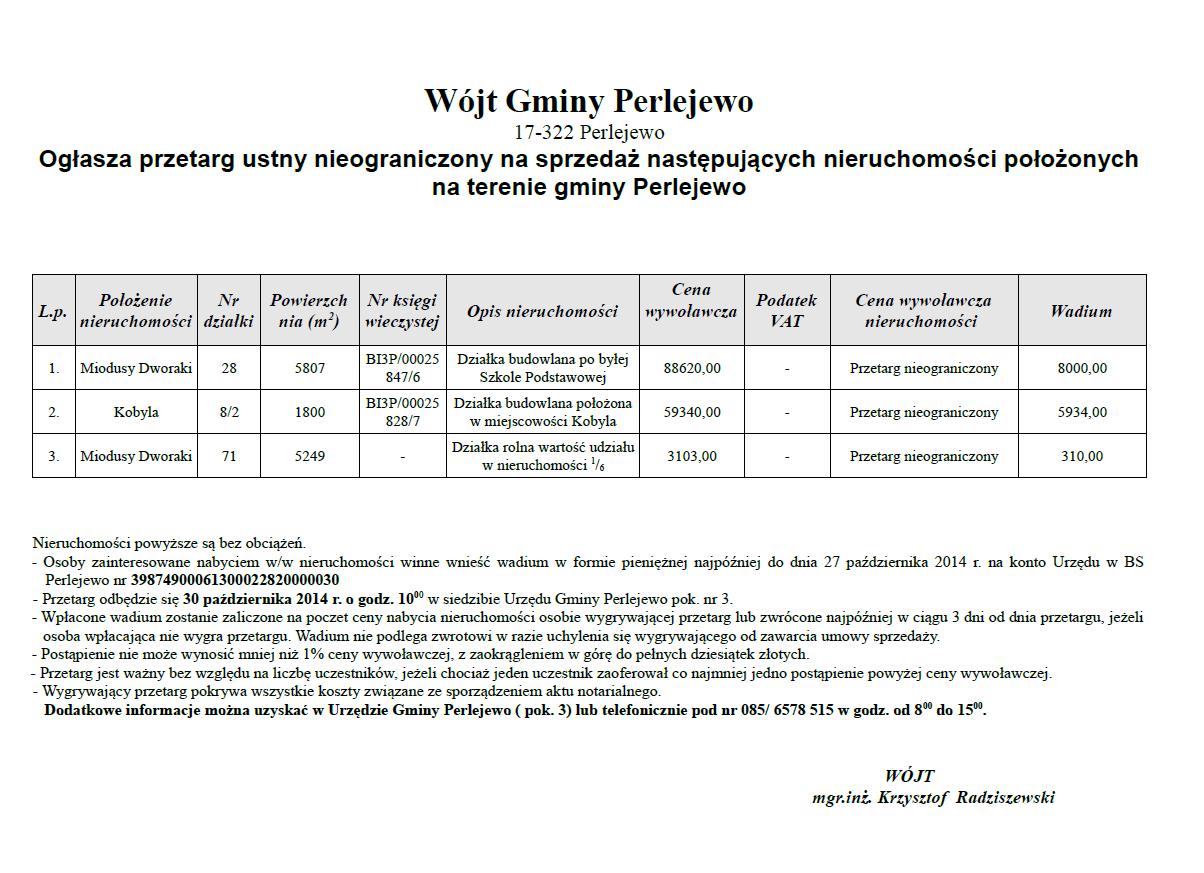 Wójt Gminy Perlejewo przyjmuje interesantów w każdą środę w godz. 9-12. Prosimy o wcześniejsze telefoniczne potwierdzenie obecności.