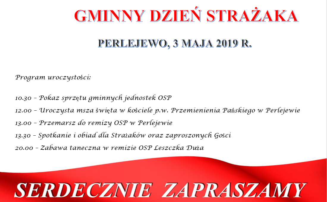 ZAPROSZENIE NA GMINNY DZIEŃ STRAŻAKA W PERLEJEWIE